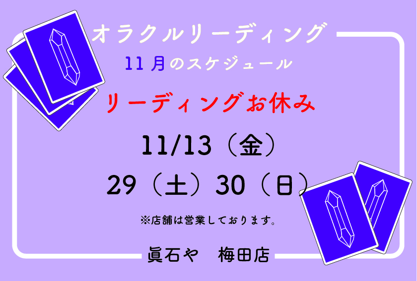 《11月》オラクルリーディングの日程をご案内@梅田店