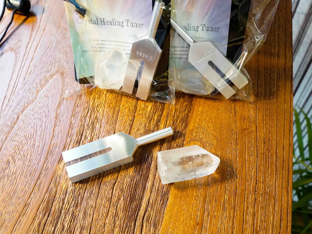 音叉を水晶に軽く打つことで澄んだ高い音色が響き、空間や天然石を浄化することができると言われています。