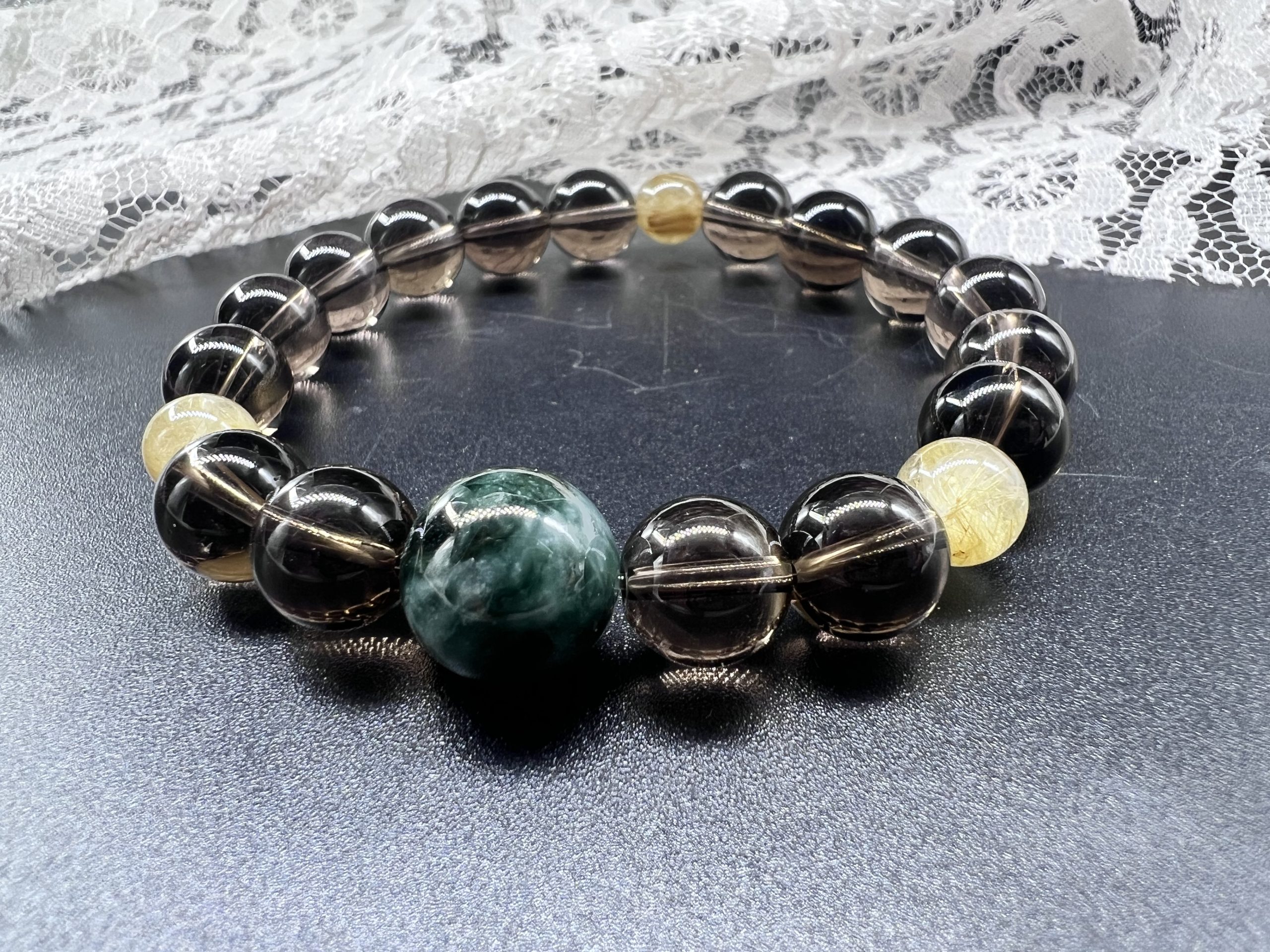 組み合わせる石はシンプルに。ルチルクォーツとスモーキークォーツにしました。