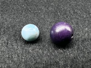 どちらも世界三大ヒーリングストーン。ラリマーは心に愛と平和をもたらせます。スギライトは不変の強いメンタルを作るサポートをしてくれます。